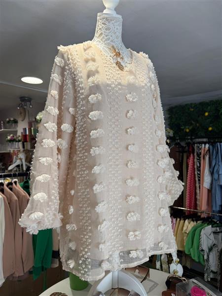 Chiffon Mini Shift Dress- Beige  2